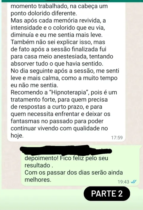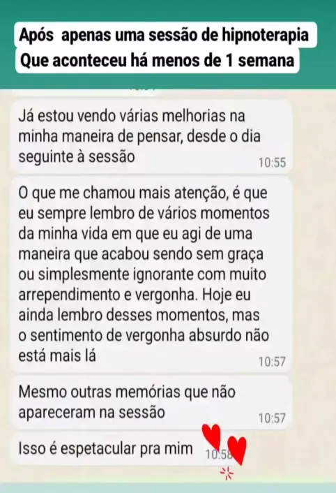 Me encantei com os relatos de pessoas que tinham transformado suas vidas. Foi então que busquei por um Hipnoterapeuta. Acessamos muitas cenas da minha infância, nada traumático no olhar de um adulto, mas o significado que dei para o que aconteceu, foi traumático pra mim.