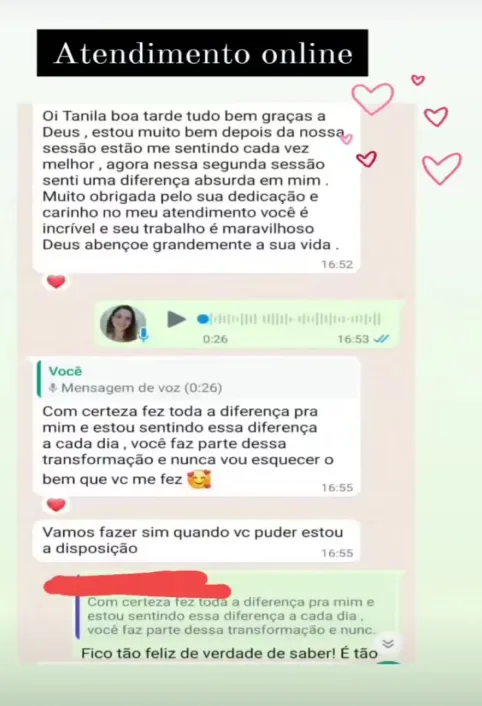 A partir dessa sessão, voltei a ser a Tanila alegre e tranquila que sempre fui, porém ainda mais leve. E foi a partir dessa transformação, que encontrei meu propósito de vida, tomei a decisão de me tornar hipnoterapeuta, para me tornar instrumento de transformação na vida de outras pessoas.